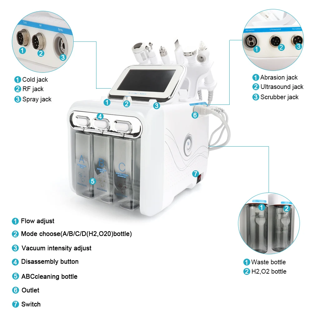 Professional 6 in 1 Hydro Dermabrasion Water Oxygen Jet Hydro Skin Care Face Massager Peeling Beaut