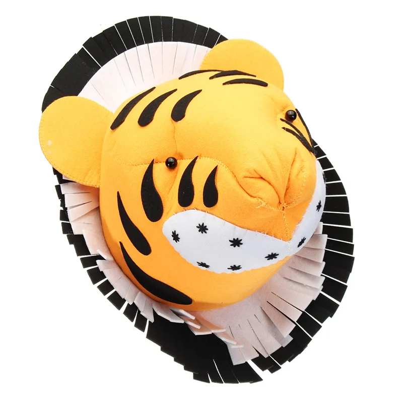 HOT SALE Tiger 3D Felt Animal Head Figurines Statues Ornaments For Birthday Party Christmas Childre