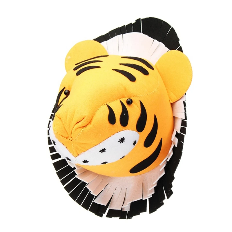 HIGH QUALITY HOT SALE Tiger 3D Felt Animal Head Figurines Statues Ornaments For Birthday Party Christmas Childre