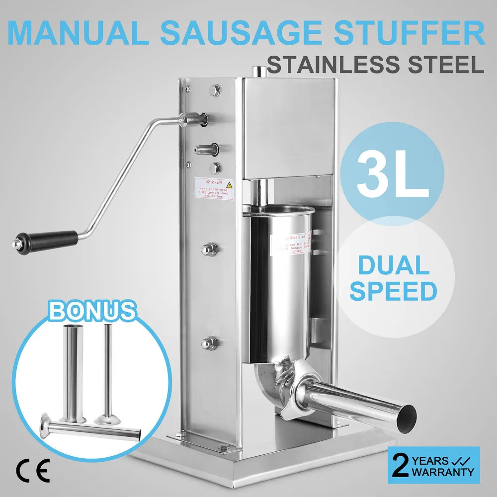 BEST QUALITY 3L Electric Vertical Commercial Sausage Stuffer Two Speed Stainless Steel Meat Press 4 Interchangea